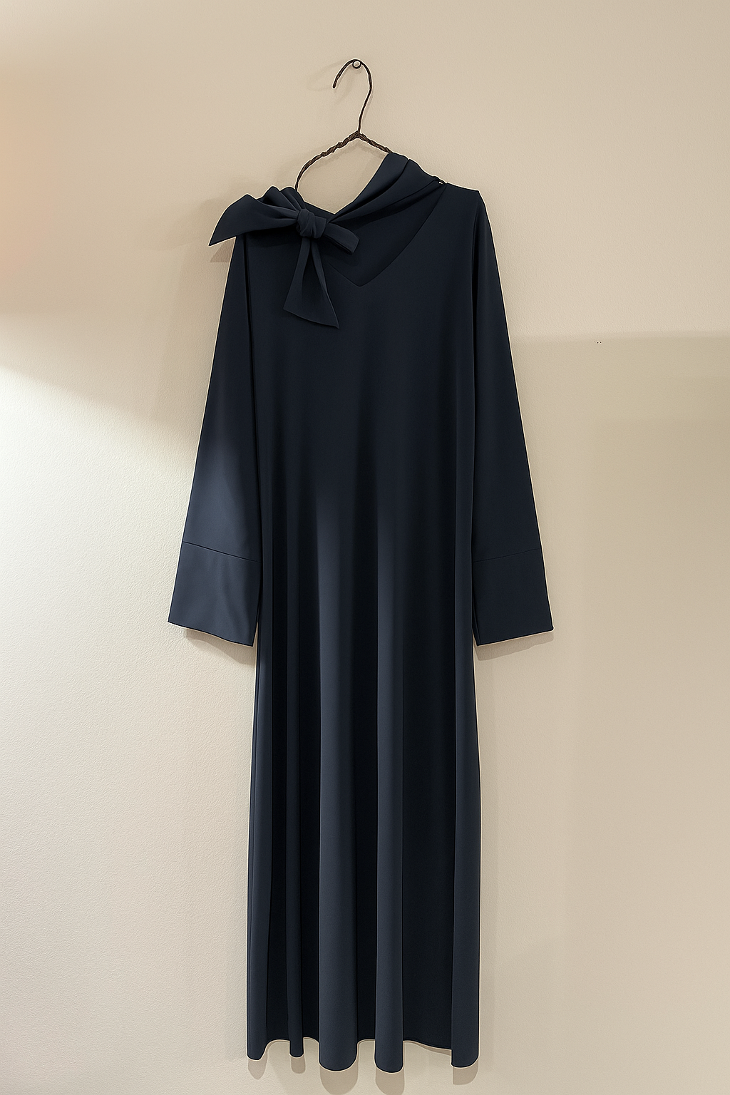 La fusciacca al collo e lo scollo a V reversibile rendono questo modello versatile e raffinato, perfetto per valorizzare ogni occasione con comfort e stile.